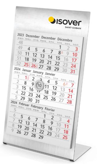 Kalendarium: deutsch, 12-seitiges 3-Monatskalendarium, Wochentage schwarz, Sonn- und Feiertage rot